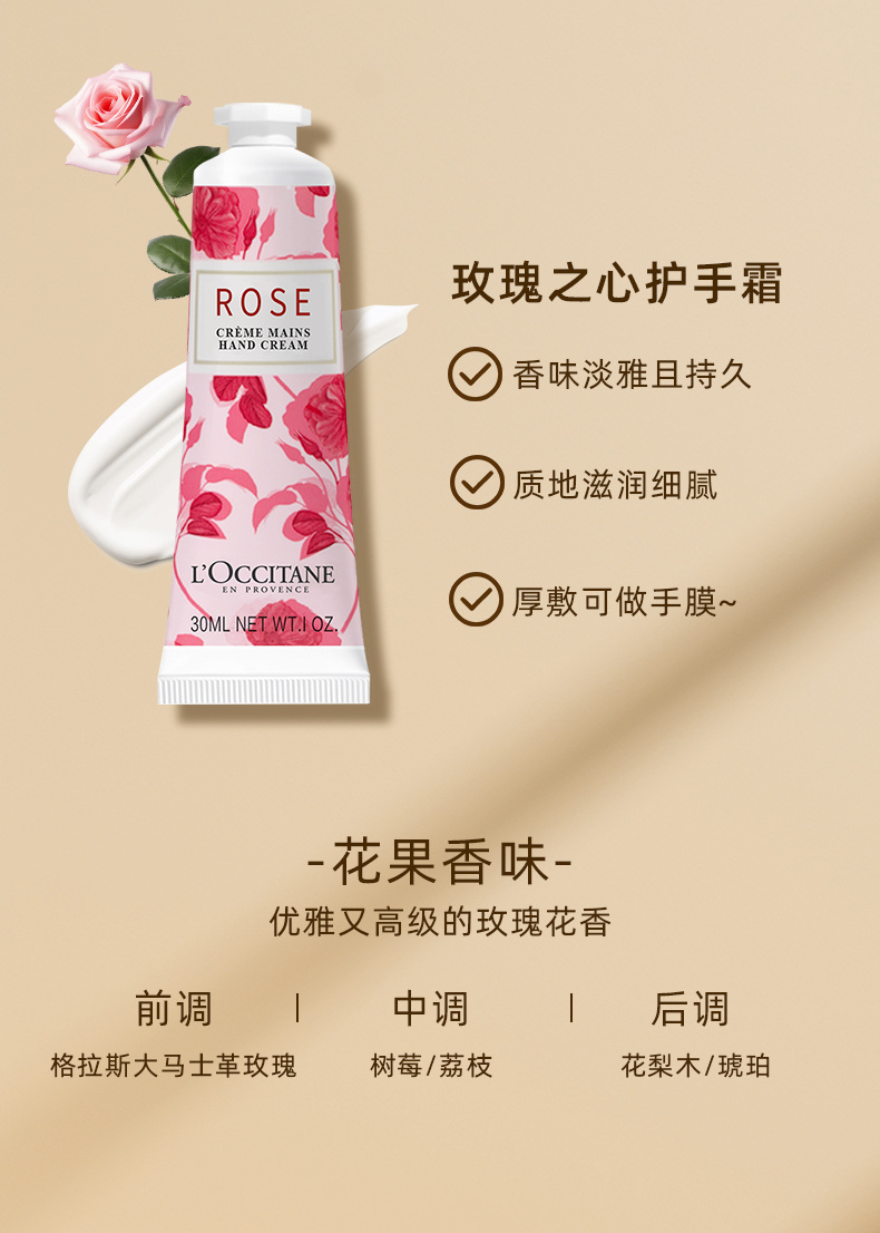 歐舒丹玫瑰之心手霜30ml
